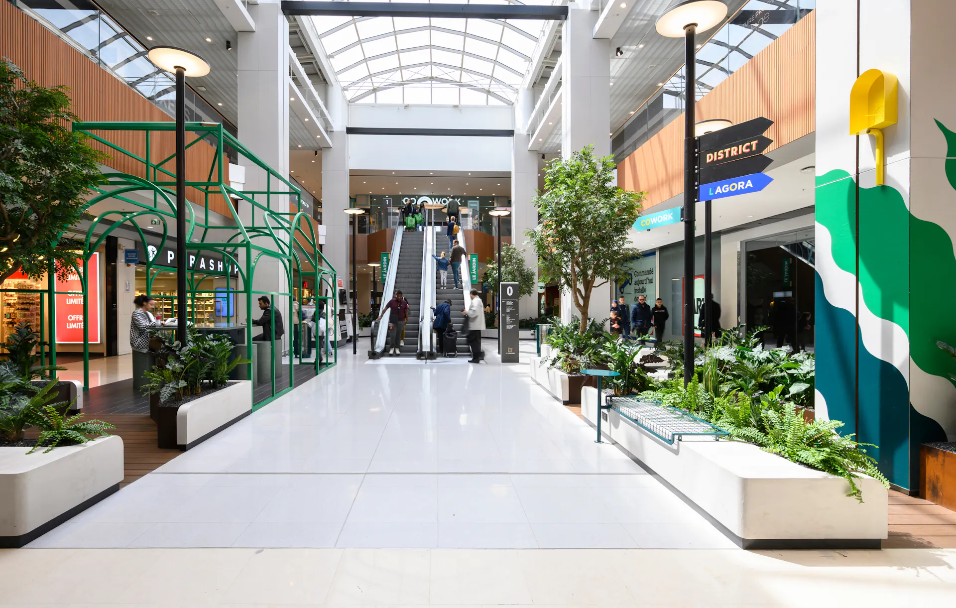 Le centre facilite aussi la mobilité responsable grâce à 100 bornes électriques, des places dédiées au covoiturage, aux vélos et aux trottinettes.
