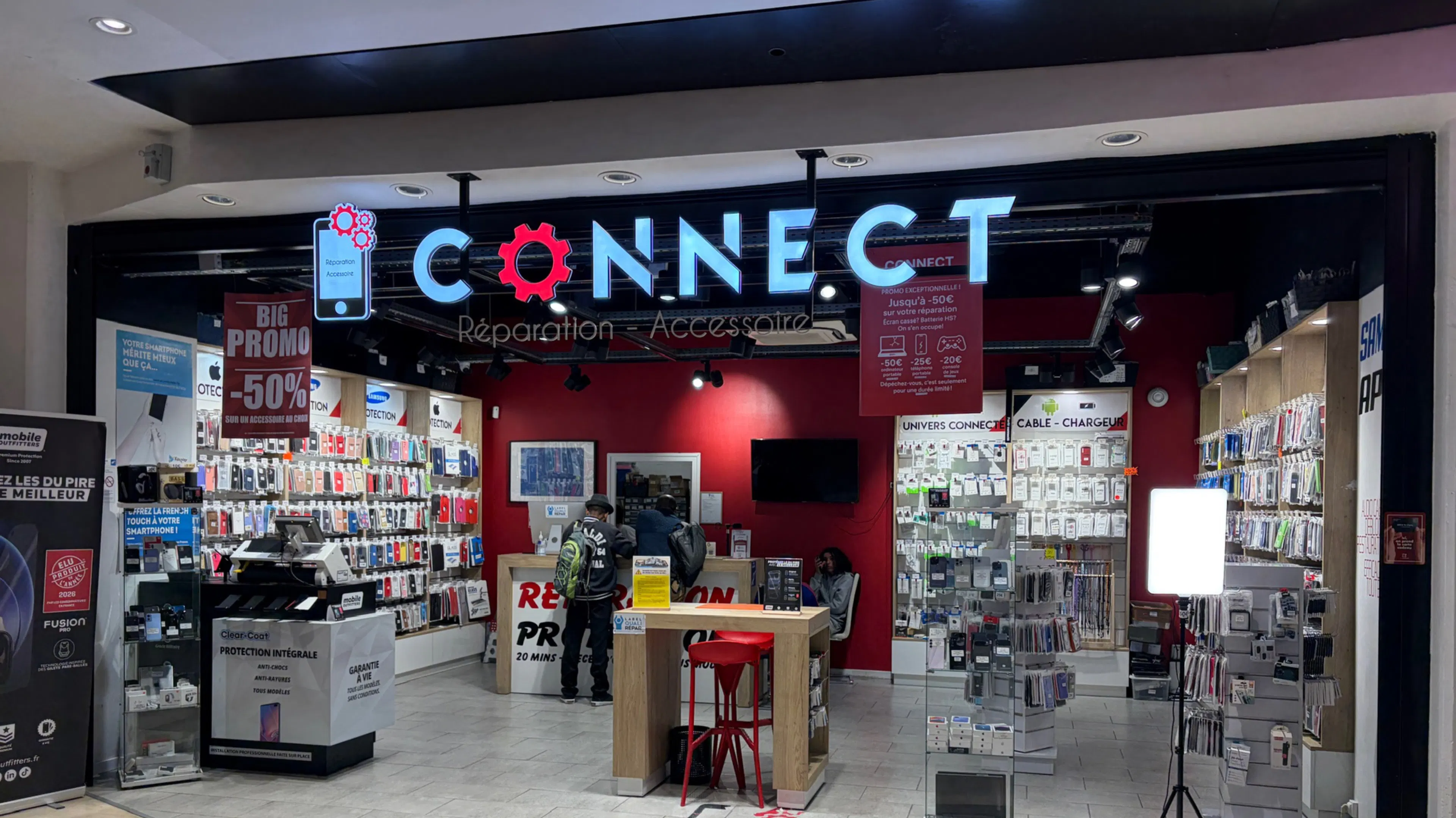 CONNECT est un spécialiste reconnu de la réparation électronique rapide et fiable aux 3 Fontaines. Présent dans le centre depuis 2017, le magasin répare smartphones, ordinateurs, tablettes et consoles de jeux, souvent en moins d’une heure et sans rendez-vous grâce à un large stock de pièces détachées. Certifié LABEL QualiRépar, CONNECT permet de bénéficier immédiatement des aides gouvernementales à la réparation, rendant les interventions plus accessibles et durables.